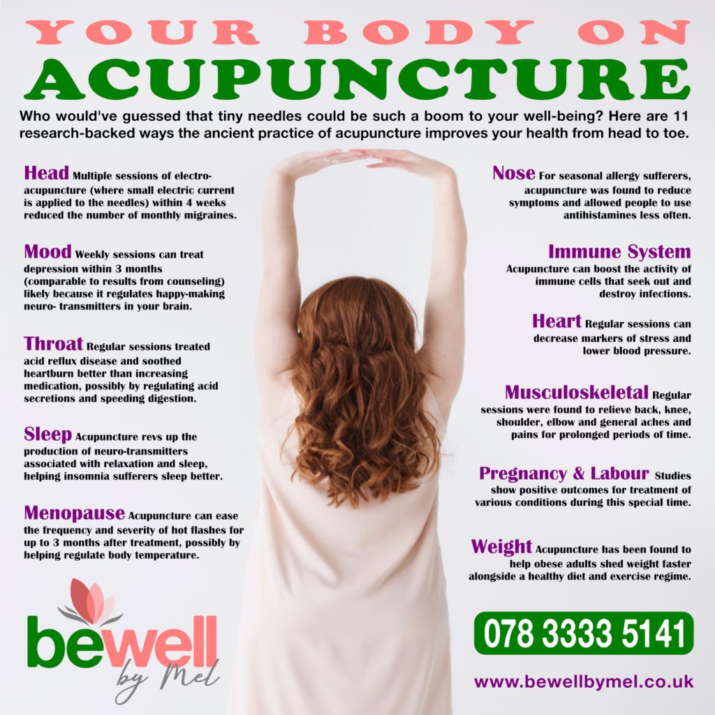 Acupuncture works by activating the body’s natural healing mechanisms. It keeps your body healthy, and helps prevent the onset of illness and disease.